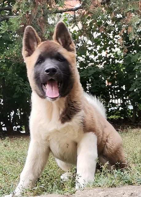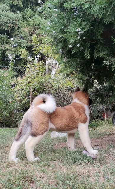 Na prodaju muško štene AMERIČKE AKITE, starosti 3meseca…vakcinisan i revakcinisan, očišćen od parazita. Odličnih krvnih linija, dobrog karaktera i krupne građe, spreman je za novi dom. Na slikama je njegov otac. Sve ostale informacije na kontakt