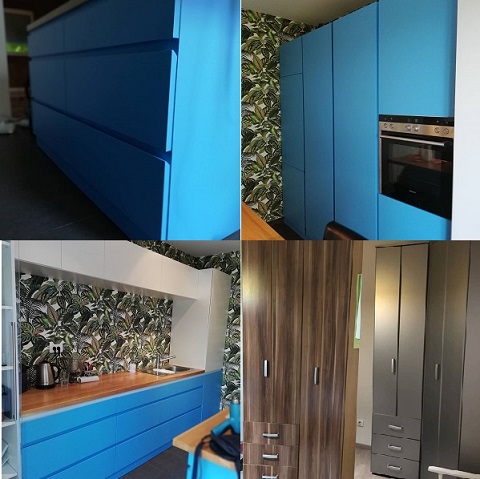 Presvlačenje nameštaja, frižidera, kuhinjsklih elemenata i nameštaja koji imaju odgovarajuću podlogu na koju može da se lepi folija u različitim nijansama i bojama, tako da niko ne primeti da nije u pitanju prava boja, već folija. Ovo je odličan načiin da promenite nešto u svom domu, a da ga ne farbate već oblažete dekorativnom a zaštitnom folijom.