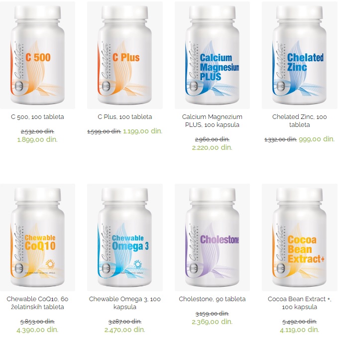 Asortiman se sastoji od preko 250 proizvoda za odrasle i decu: minerala, vitamina, proizvoda za regulisanje telesne težine, jačanje imuniteta, lepotu (kožu, kosu, nokte), uključujući kozmetičke i elektronske proizvode, kao i proizvode za održavanje čistoće.Proizvode možete poručiti svakoga dana i u svakom trenutku online, putem e-maila: info@3vitas.com ili telefona: 066423463. Isporuka se vrši u roku od 1-2 radna dana.Vrši se učlanjivanje i obračunavanje popusta na svaku Vašu kupovinu.CaliVita International je multinacionalna kompanija aktivna u 37 zemalja, dinamičnog razvoja koja putem svoje delatnosti širi ideju zdravijeg i uspešnijeg života.Već više od 25 godina komapnija nudi inovativne proizvode koji zadovoljavaju najviše standarde kvaliteta, koristeći prednosti, ne samo najsavremenijih naučnih saznanja već i tradicionalnu medicinu, dokazanu primenom kroz vekove.Već 23 godine u Srbiji sa zadovoljstvom i uspehom CaliVIta promoviše važnost dopune naše svakodnevne ishrane esencijalnim, životno važnim hranjivim materijama.Proizvodi CaliVita proizvode se najsavremenijom farmaceutskom tehnologijom i praksom (GMP), kao i pod striktnom kontrolom FDA – svetske organizacije za kontrolu prehrambenih i farmaceutskih proizvoda.Pozivamo Vas da i Vi pronađete svoje omiljene proizvode koji će pored redovne fizičke aktivnosti i zdrave uravnotežene ishrane, pozitivno uticati na kvalitet Vaseg i života ljudi oko Vas.Više o nama : https://3vitas.com/