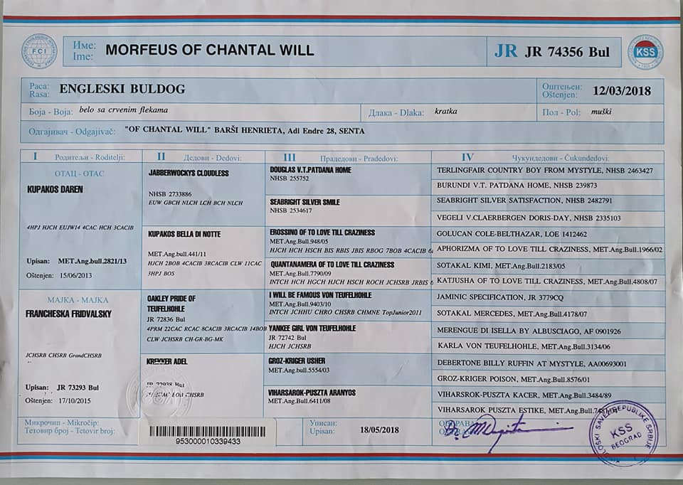 Sire: Kupakos Daren 4HPJ HJCH EUJW 4CAC HCH 3 CACIB