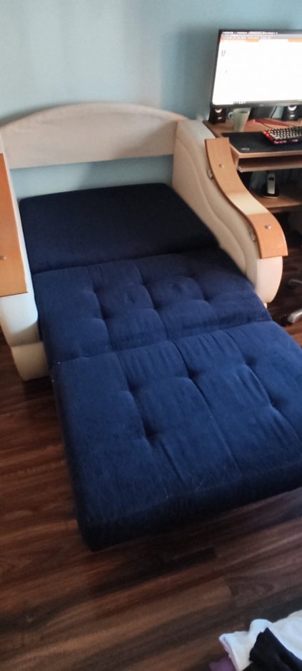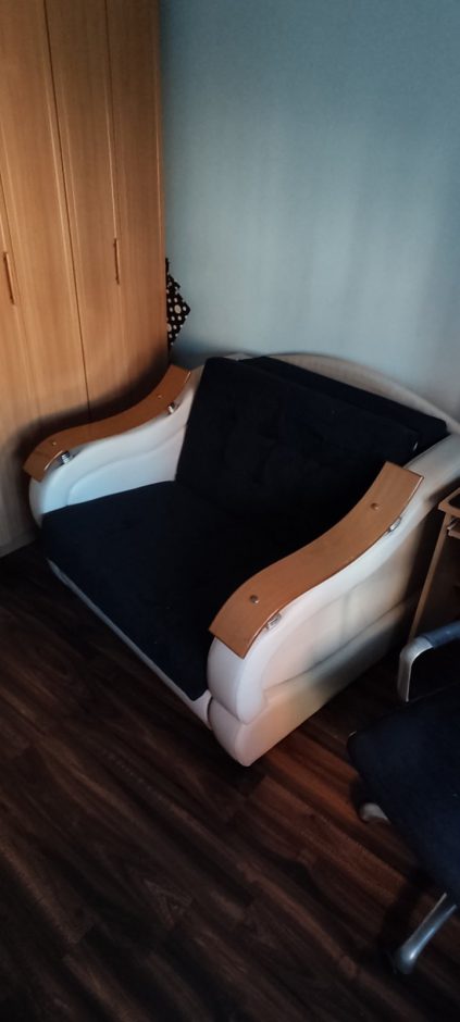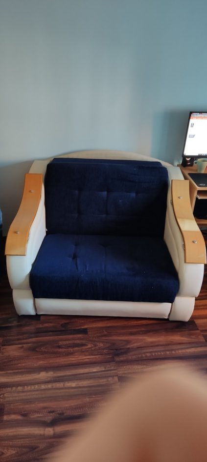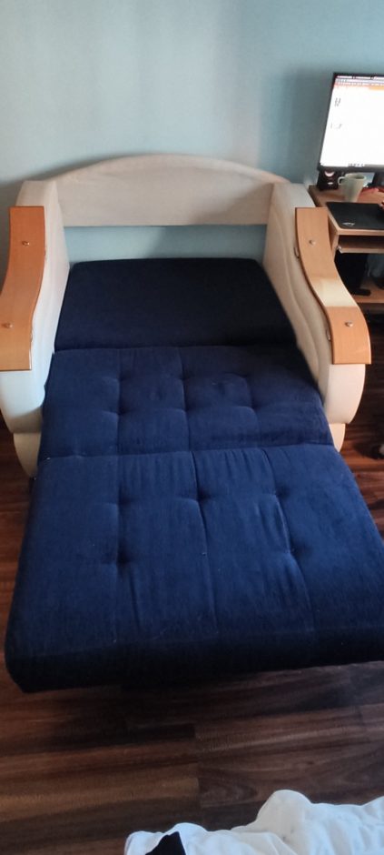 Prodajem fotelju na razvlacenje.Širina cele fotelje 122cm,širina sedećeg i spavajućwg dela 90cm,dužina rasklopljene fotelje 2m.Ocuvana.Jedino oštećenje ogrebotina na rukohvatu.Cena 100eura.Kontakt 0643620817