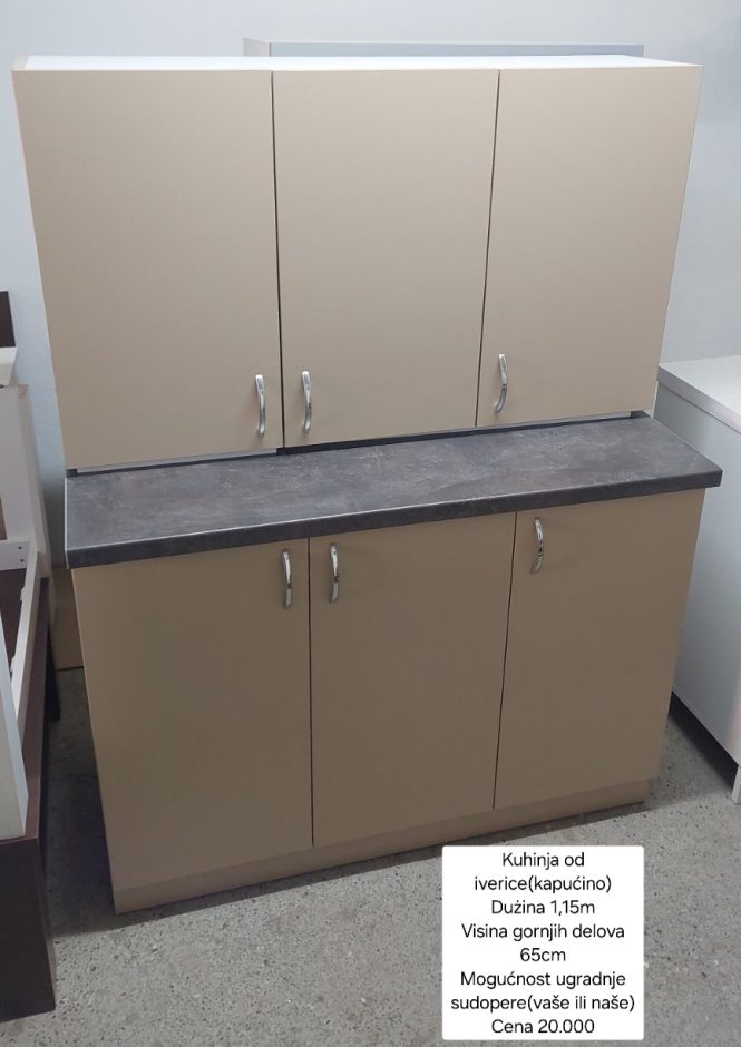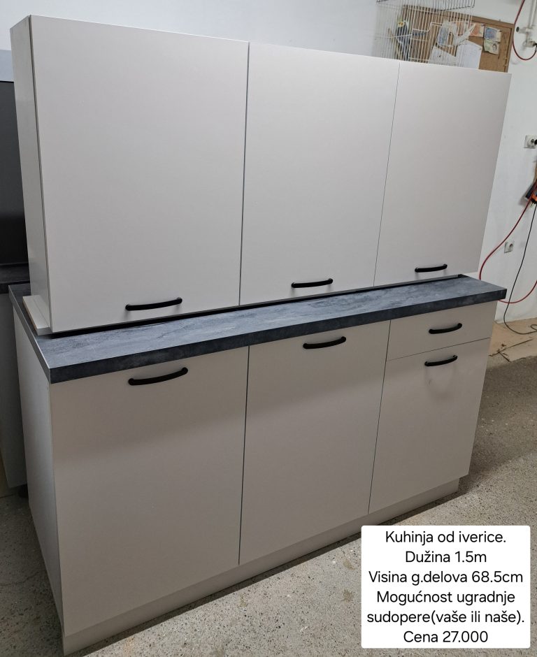 Na prodaju kuhinje od iverice. Nove, nekorišćene. Cene su bez sudopere, postoji mogućnost gratis ugradnje vaše sudopere ili naše sudopere uz doplatu. Sve informacije su na slikama.