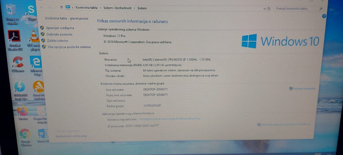 Prodajem laptop marke HP 250 G6. Procesor je Intel Celeron Dual Core N3350 2,4 GHz. Hard disk je 500 GB, RAM memorija je 4 GB DDR3. Ima web kameru sa ugradjenim mikrofonom. Baterija je litijum-jonska 31Wh. Graficka kartica je Intel® HD Graphics 500. Operativni sistem Windows 10. Ima portove za USB, HDMI, VGA, LAN. Laptop je nov i koriscen samo mesec dana.