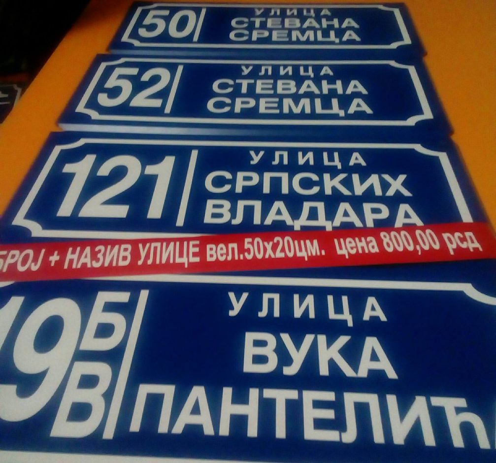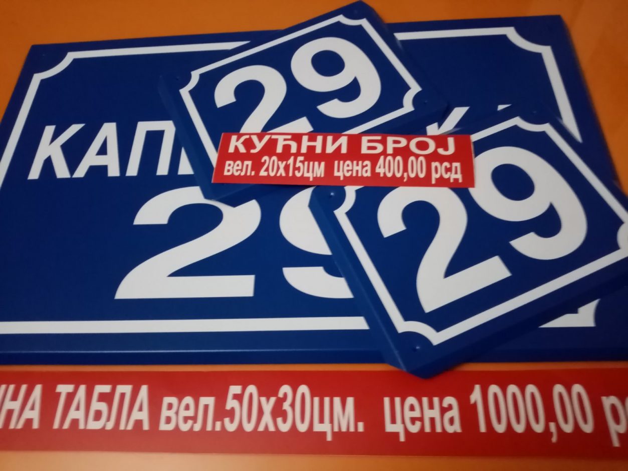 Tabla/broj + ime ulice vel. 200 * 500 mm. / cena 800 rsd,