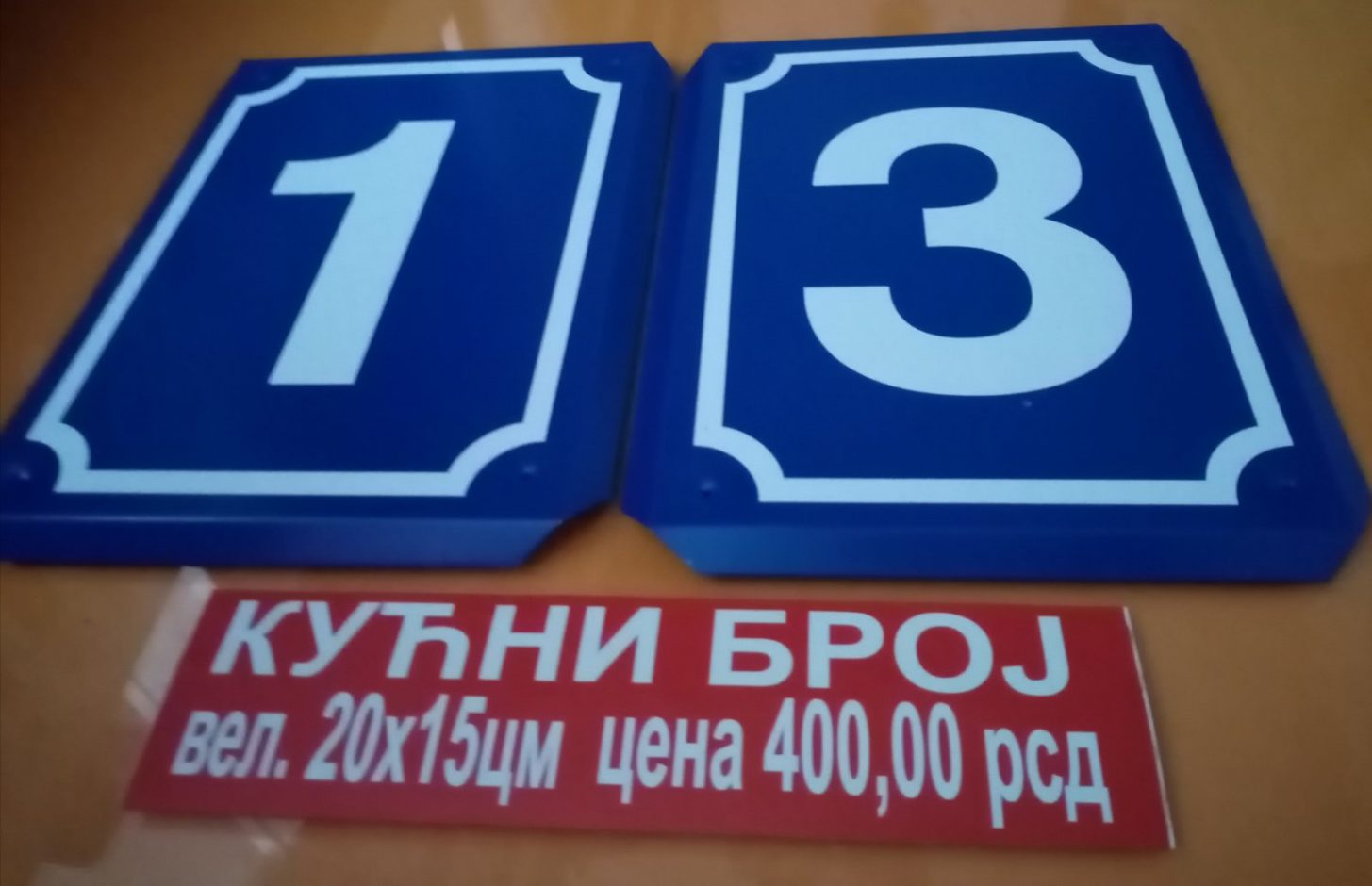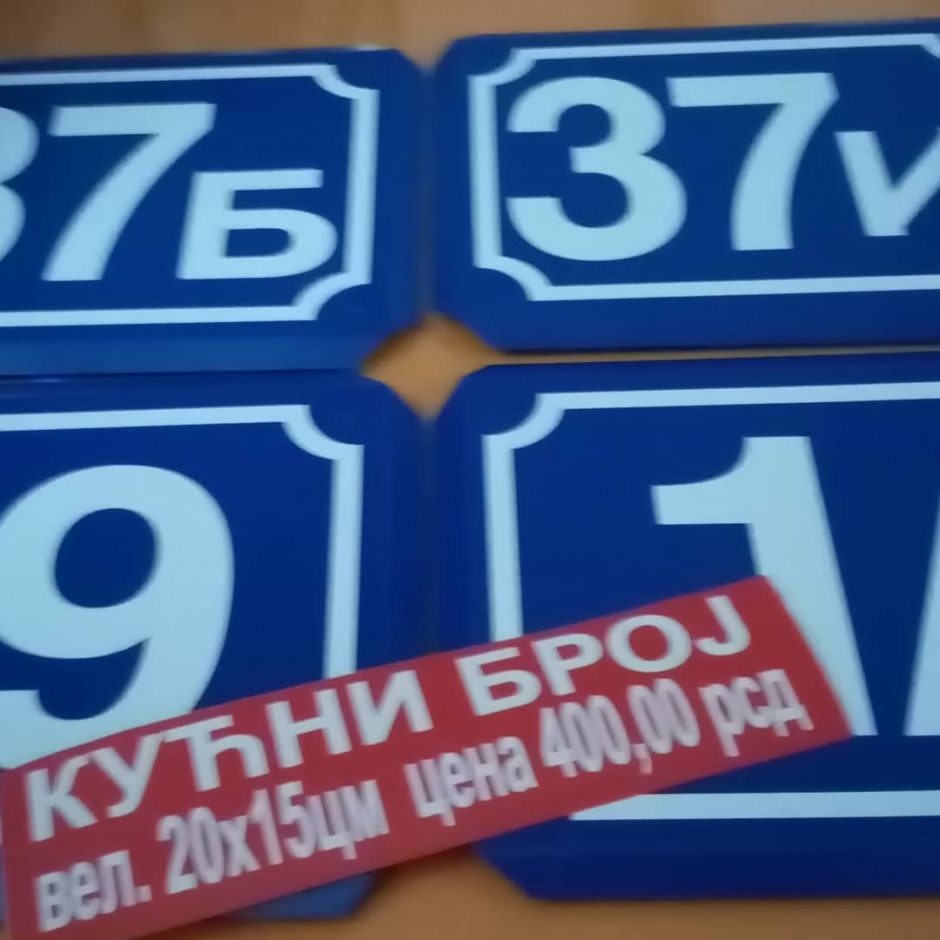 Tabla sa kućnim brojem vel. 500 * 300 mm. / samo broj – 400 rsd,