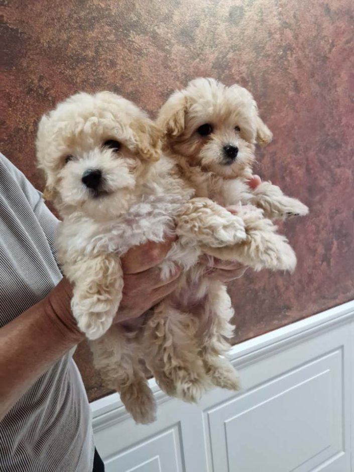 Preslatki maleni MALTIPOO stenci, spremni su za preuzimanje. Jako malog rasta, mama mini mini maltezer, a otac toy crvena pudla. Divnog su karaktera, ne linjaju se i nemaju neprijatnih mirisa. Odgajani su u kucnim uslovima a za vise informacija pozovite. Moguca dostava.