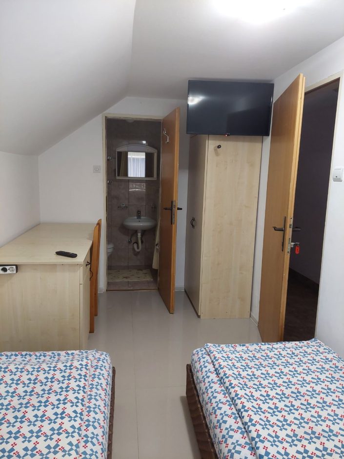 Sobe dvokrevetne i trokrevetne sa svojim kupatilom.