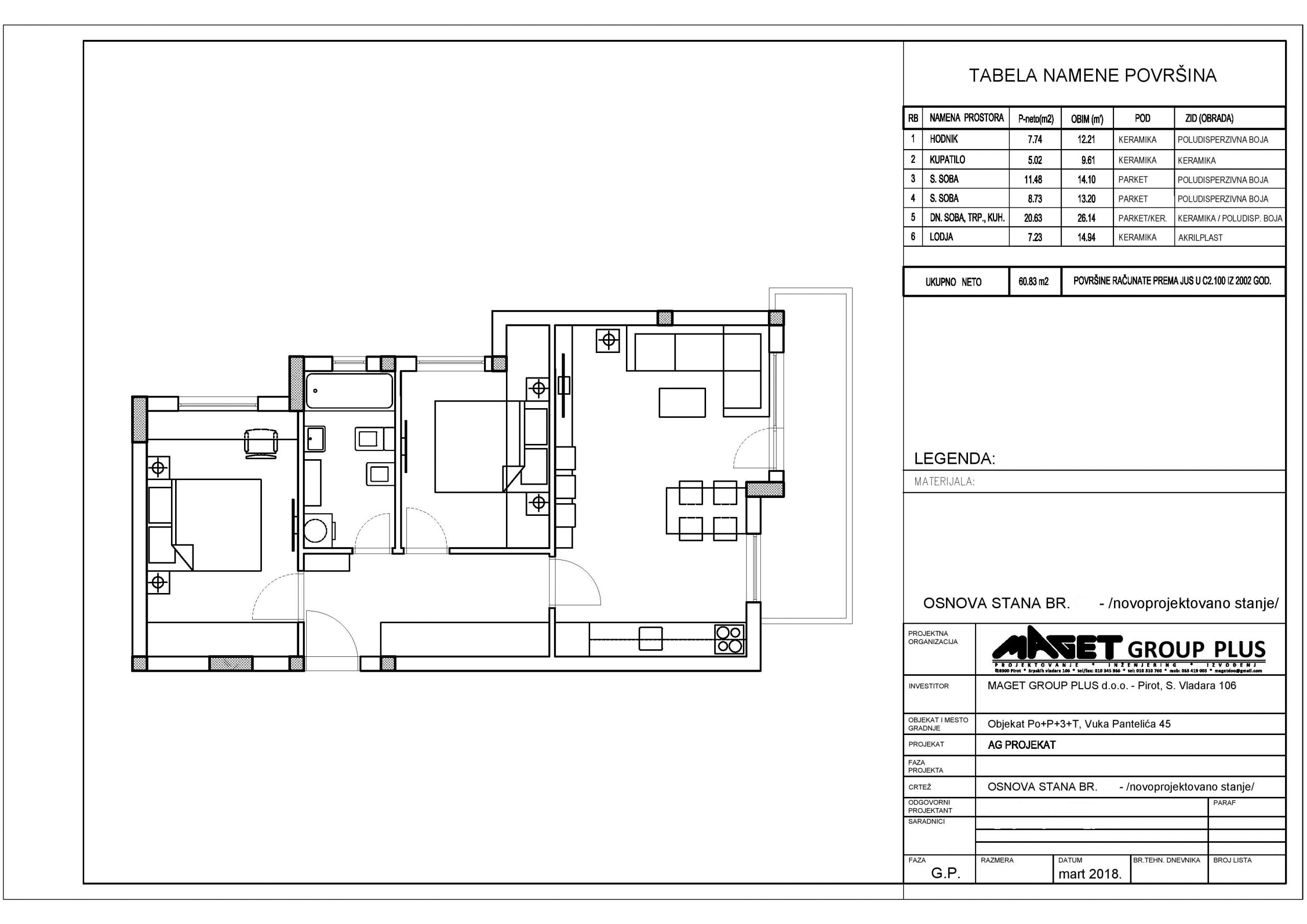 Stan je trosoban, izuzetno funkcionalan, povrsine 61 m2.
