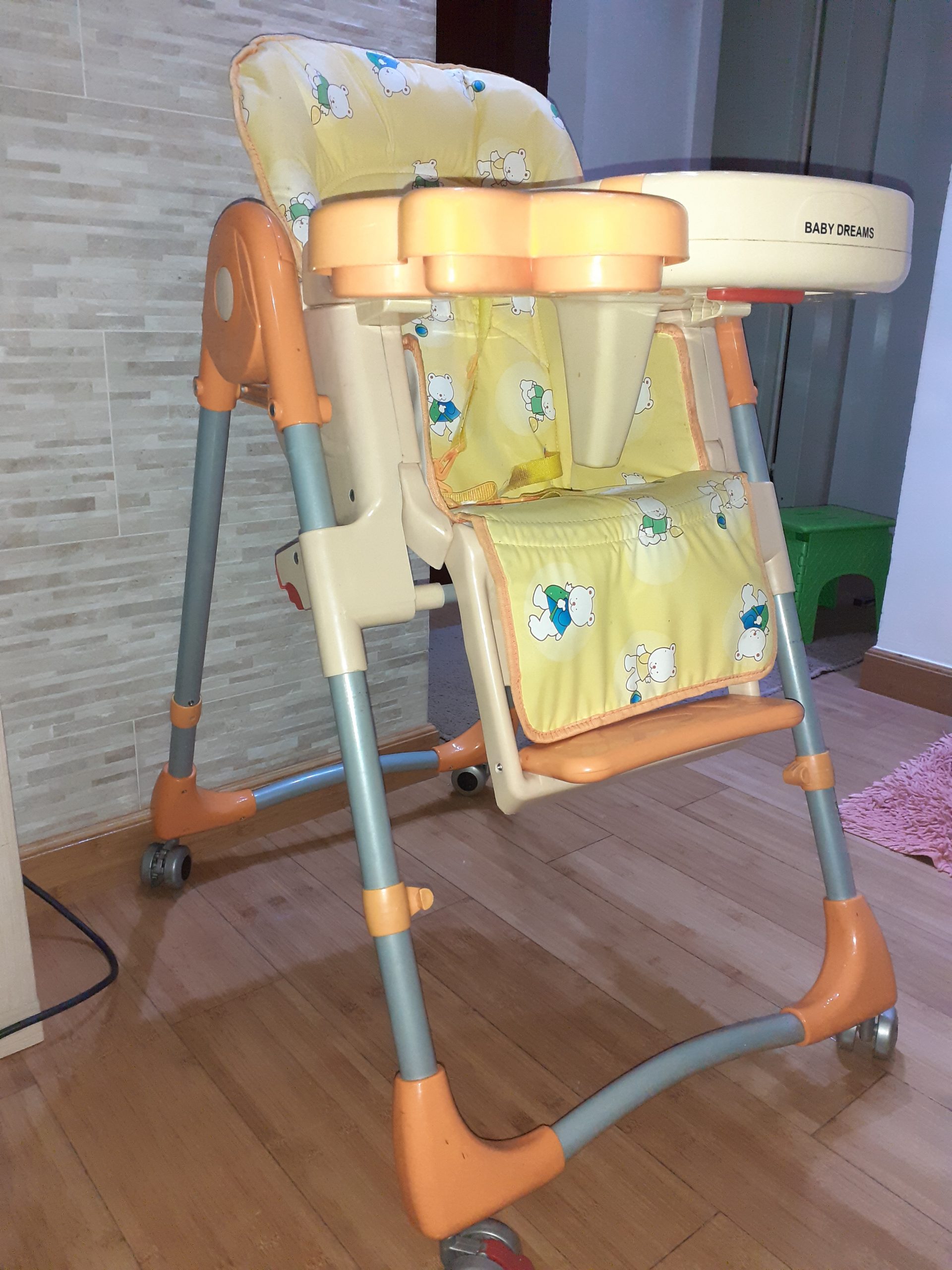 Baby stolica za hranjenje, u odlicnom stanju, veoma malo koriscena. Ima sedeci i polusedeci polozaj, mogucnost podesavanja visine, od materijala koji je lak za odrzavanje.
