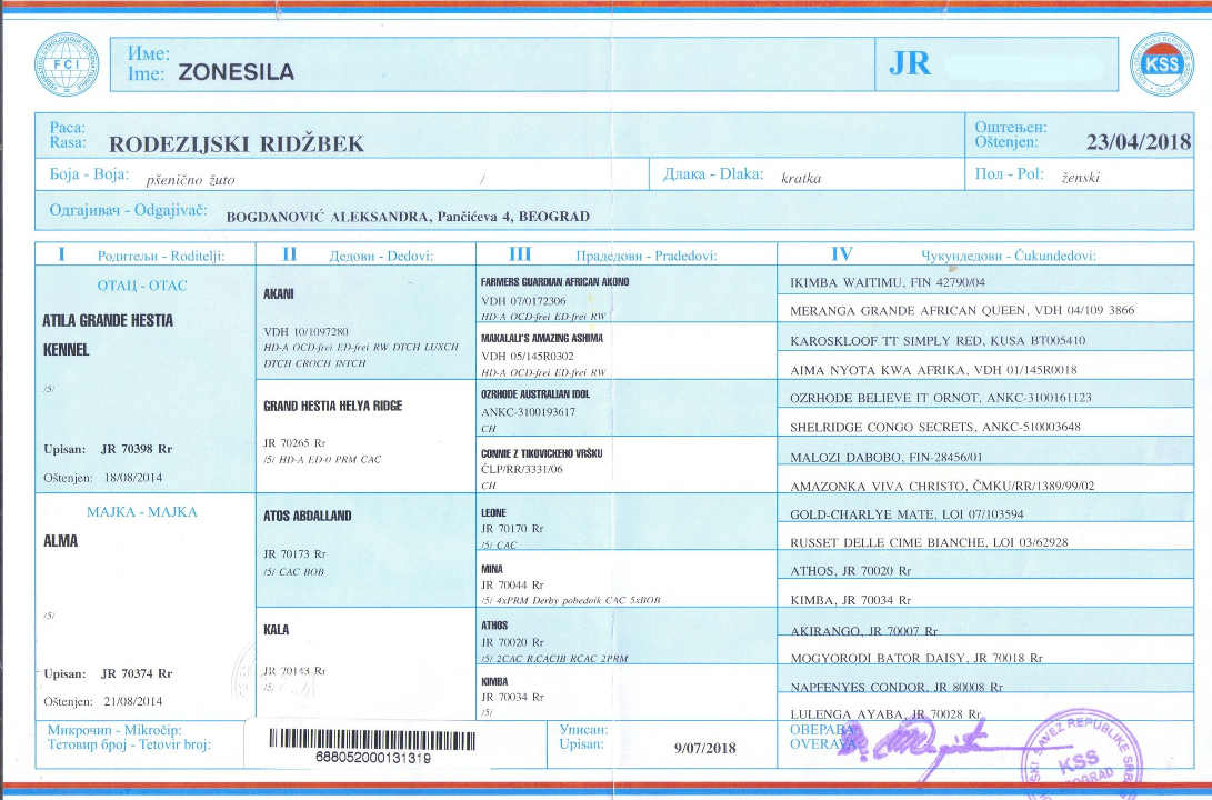RODEZIJSKI RIDZBEK štenci. Oštenjeni 01.06. predaja štenaca 01.09. deset dana posle druge vakcine. Štenci su izložbene i pet klase. Odgajivačnica je u mestu Aleksa Šantić opština Sombor.