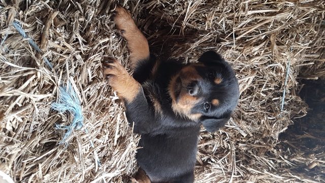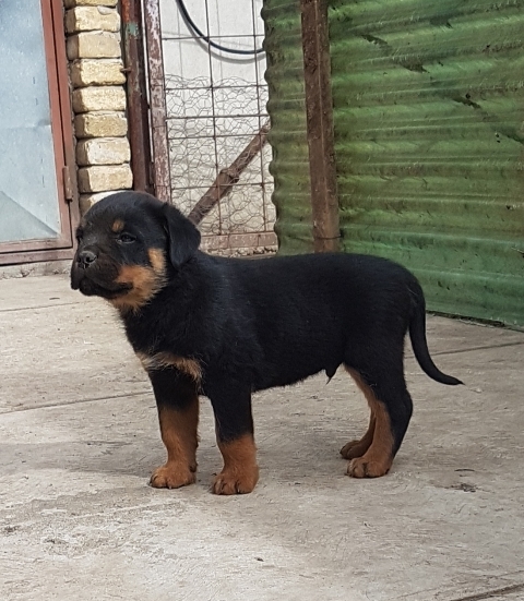 Na prodaju ROTVAJLER štenci oštenjeni 19.08.2020g. Štenci su očišćeni od parazita. U leglu je 5 mužjaka i 2 ženke. Oba roditelja su u našem vlasništvu i imaju rodovnik. Oni su odlični psi čuvari, poslušni i vole da se igraju.