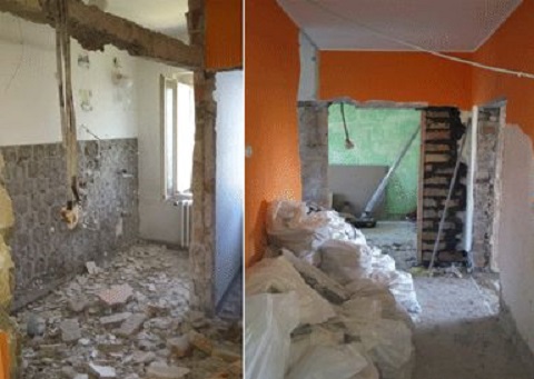 Nakon pažljivog i sistematskog planiranja radova počinju grubi radovi rušenja pregradnih zidova ili otvaranje otvora u zidu. Rušenje zidova, demontaža dotrajalih vodovodnih i elektro instalacija.