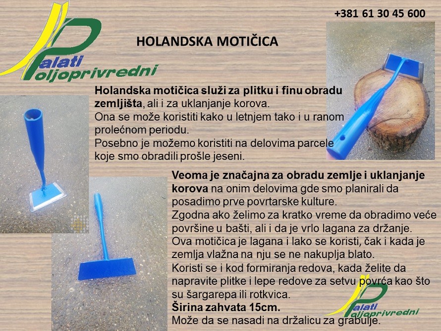 Holandska motičica služi za plitku i finu obradu zemljišta, ali i za uklanjanje korova.