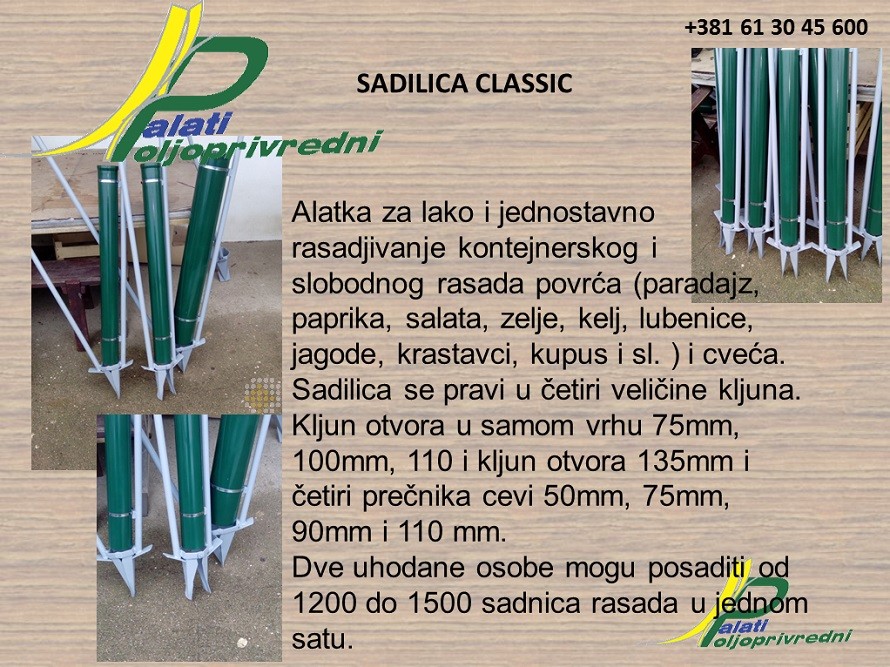 Sadilica Classic je alatka za lako i jednostavno rasađivanje kontejnerskog i slobodnog rasada povrća (paradajz, paprika, salata, zelje, kelj, lubenice, jagode, krastavci, kupus i sl. ) i cveća.